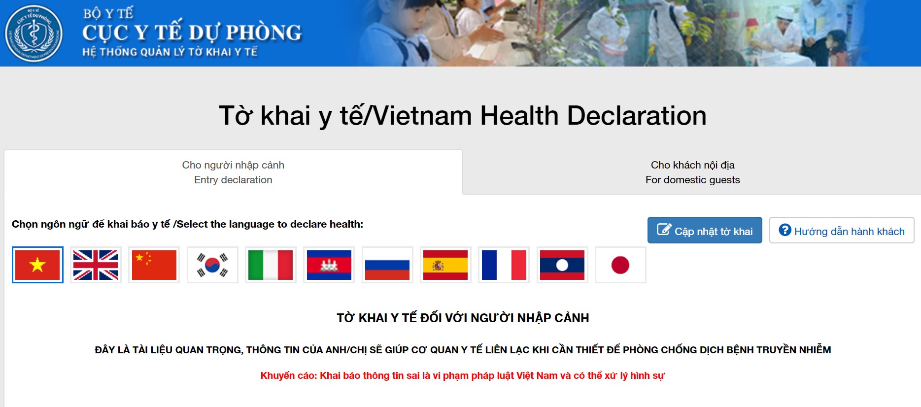 Mọi du khách nhập cảnh Việt Nam đều phải thực hiện khai báo y tế.